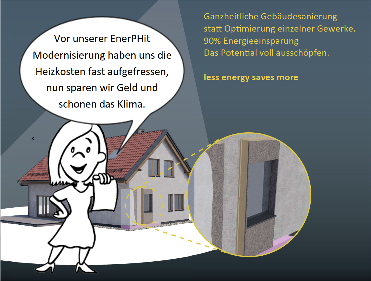 Das System wurde speziell für die Gebäudesanierung entwickelt. Der Investor legt das energetische Niveau bereits zu Beginn der Sanierungsmaßnahme fest. Dadurch können alle wichtigen Details frühzeitig in der Planungsphase definiert und gegebenenfalls projektspezifisch angepasst werden.